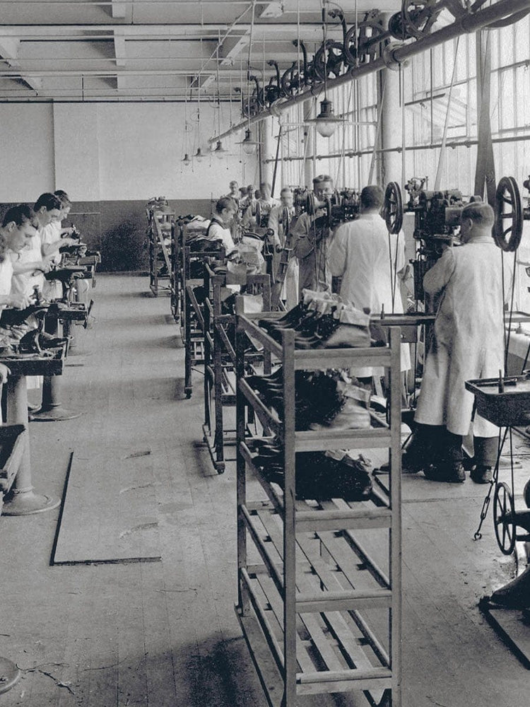 Here they would install the latest machinery invented by Charles Goodyear from the USA for stitching the upper and insole to a welt. This made the process much easier and faster whilst also providing a superior construction. It would be known as Goodyear-welting.